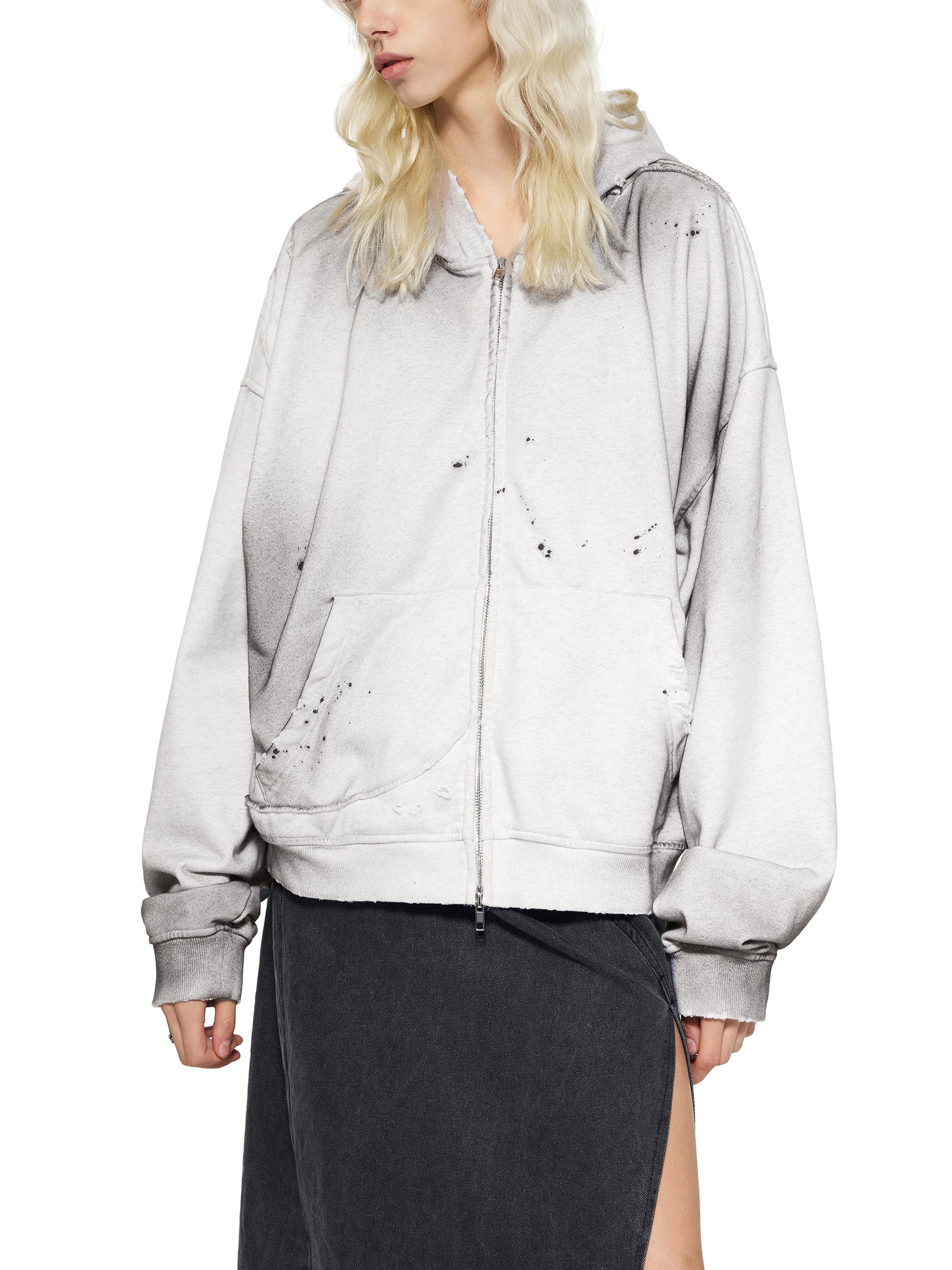 Sun Fade Frayed Raw Edge Fleece Zip Hoodie